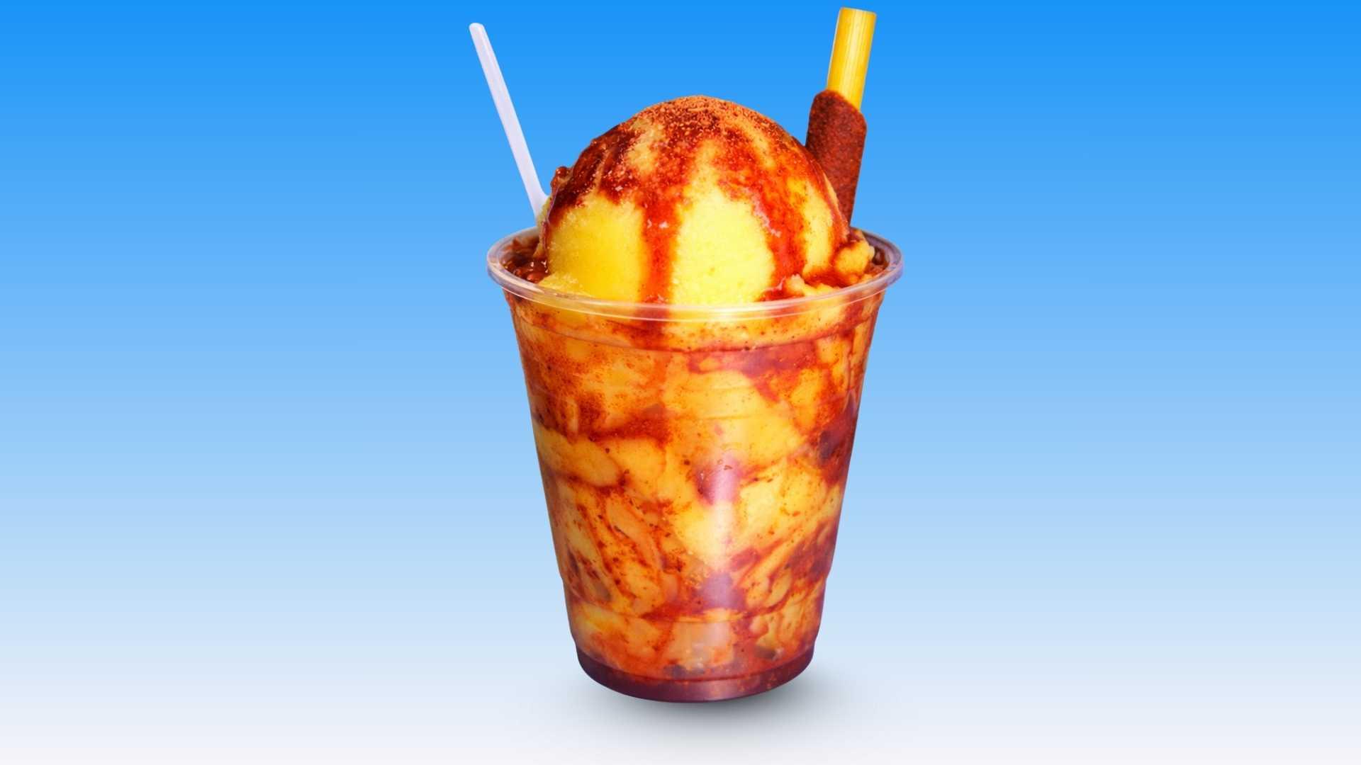 It has a mild chili kick from Tajín and chamoy, but it’s balanced and not overwhelming.