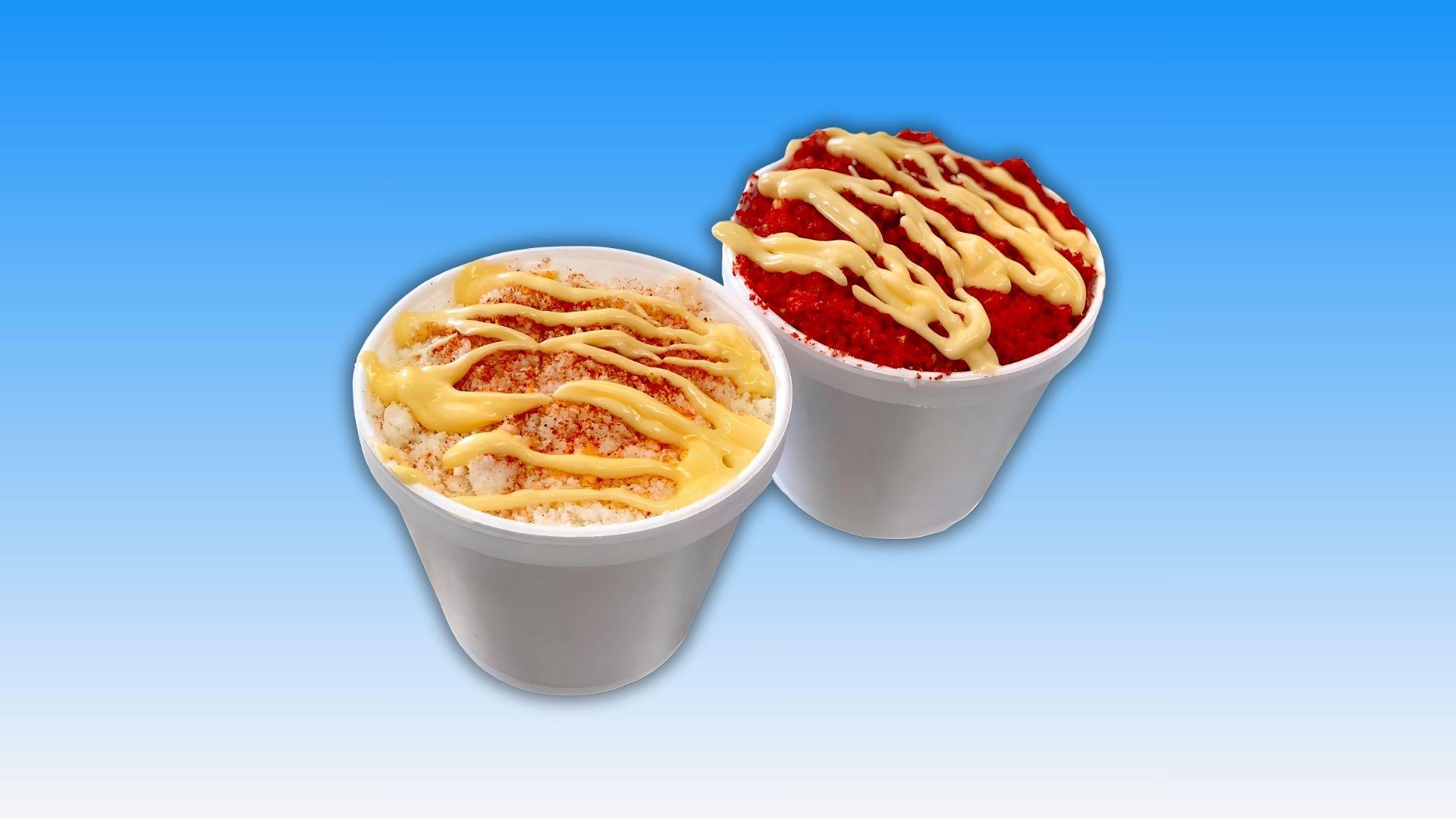 Granos de elote tierno bañados en mantequilla derretida, mayonesa cremosa, queso cotija desmoronado y un toque de chile en polvo para lograr el balance perfecto entre lo cremoso, salado y ligeramente picante.