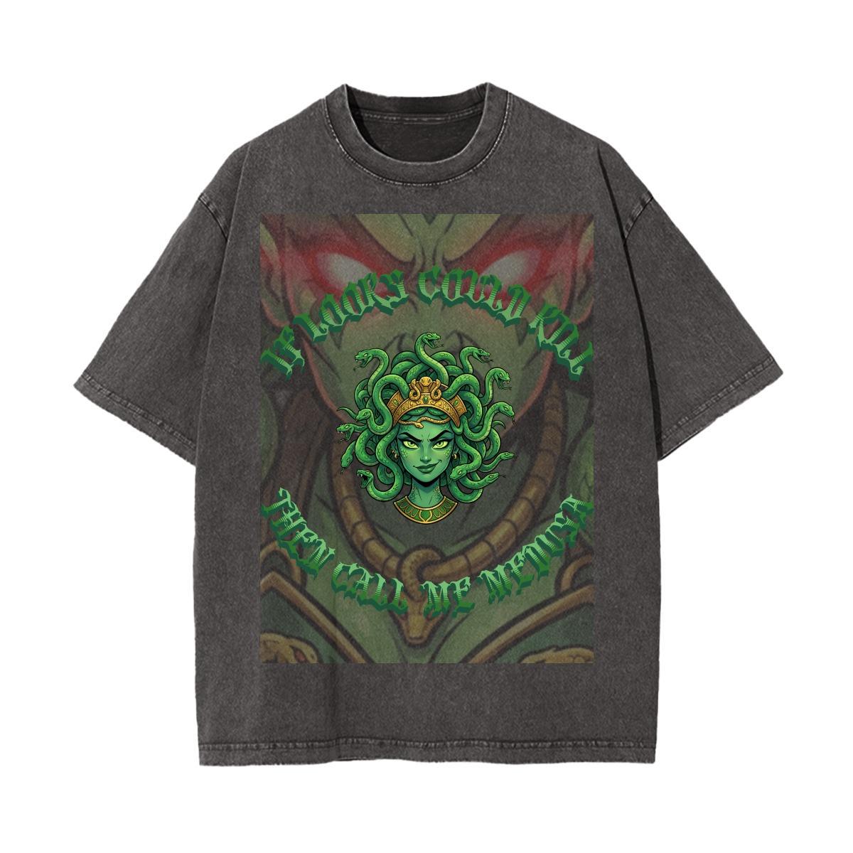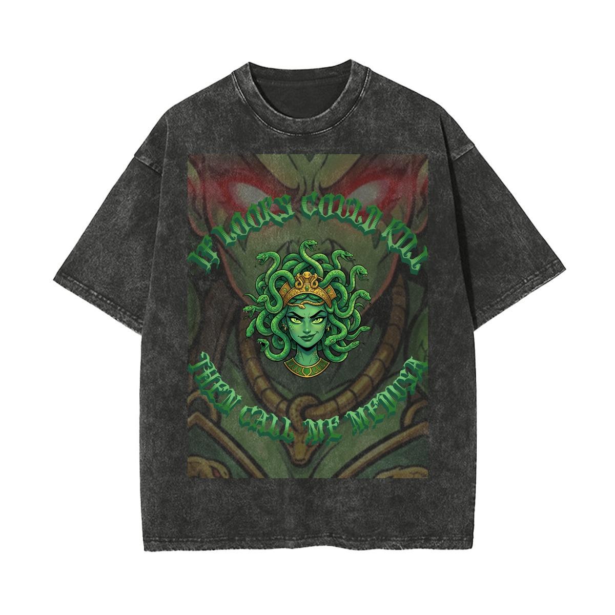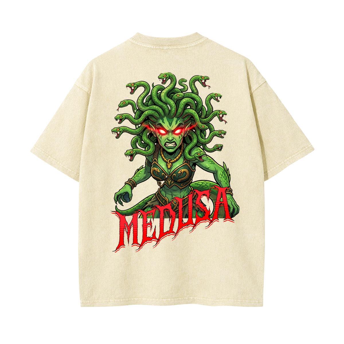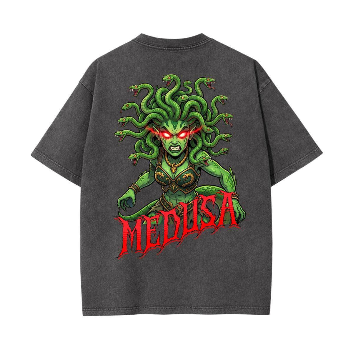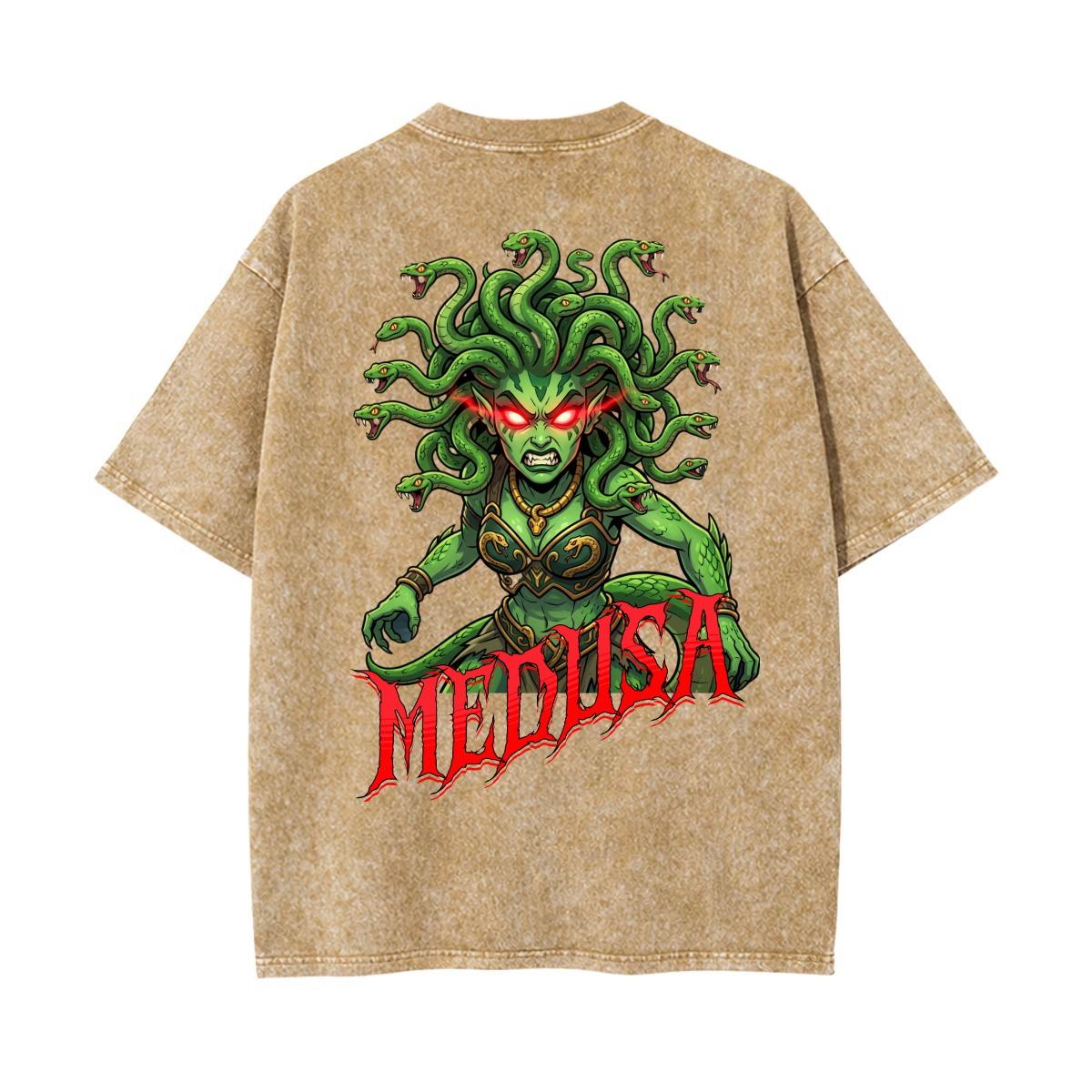 Acid wash style shirt with custom original Medusa design.