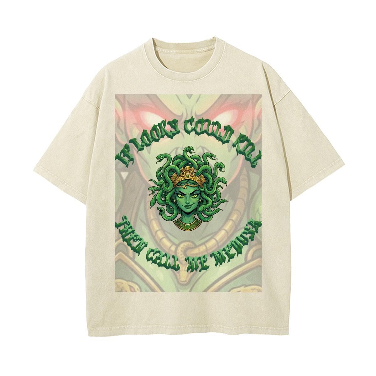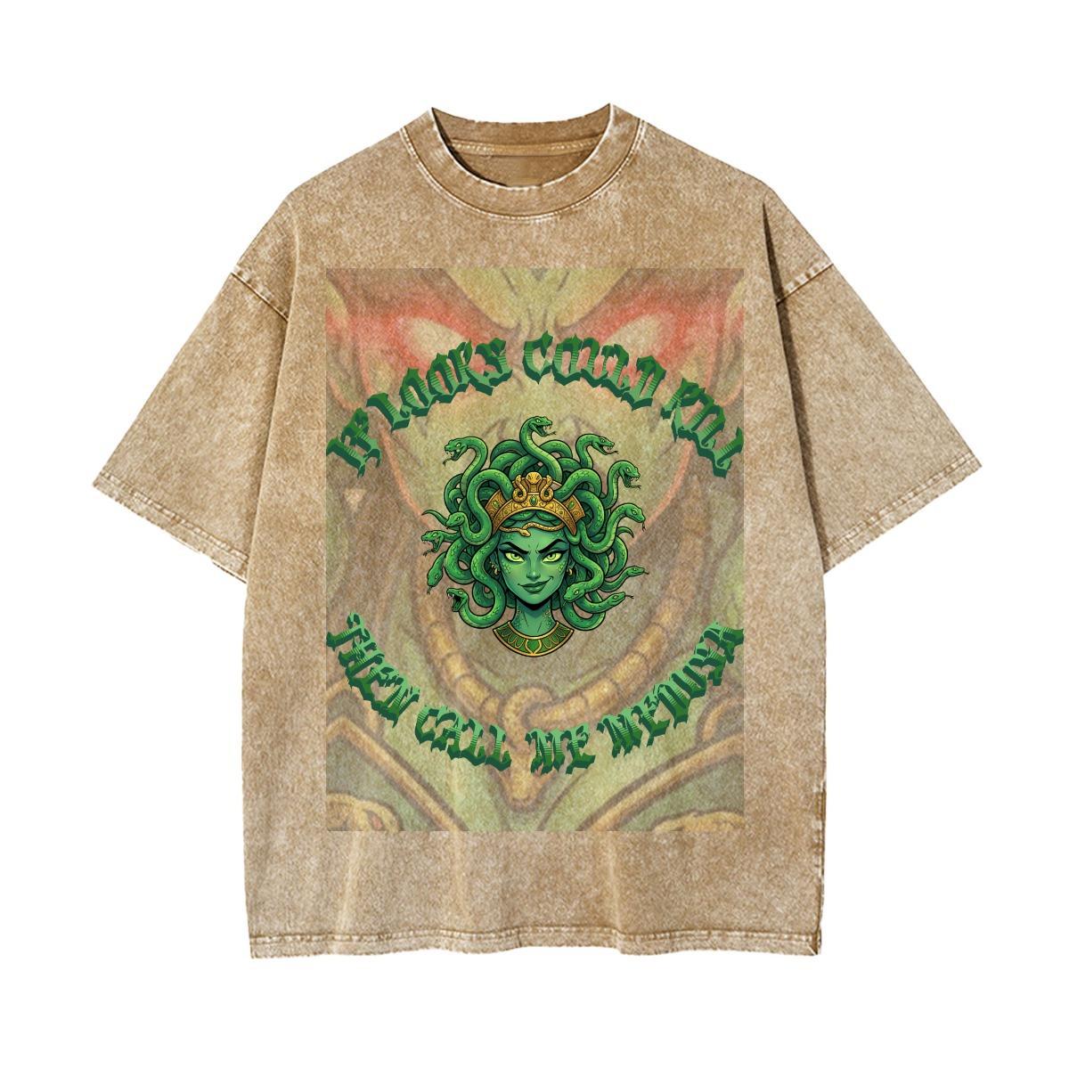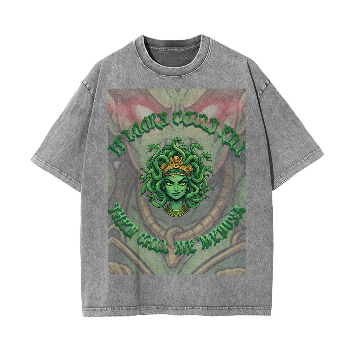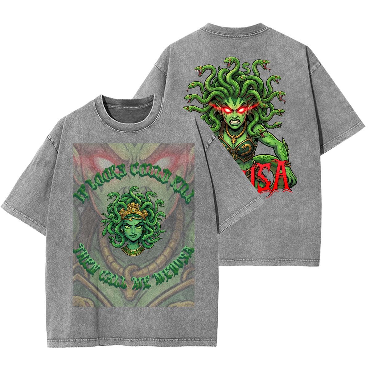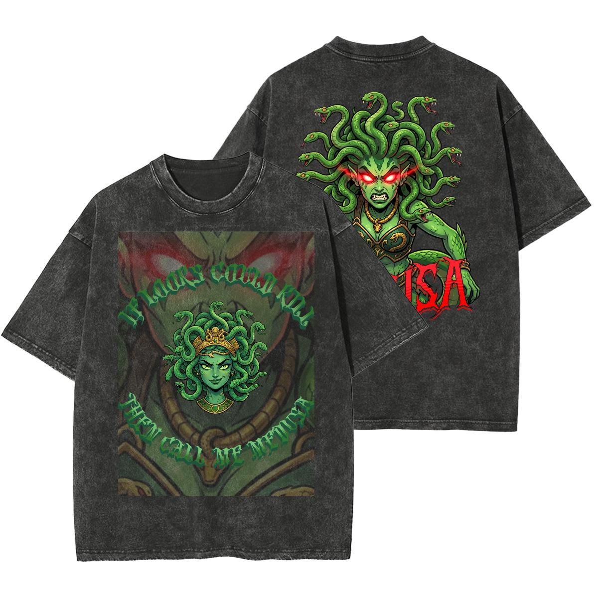 Acid wash style shirt with custom original Medusa design.